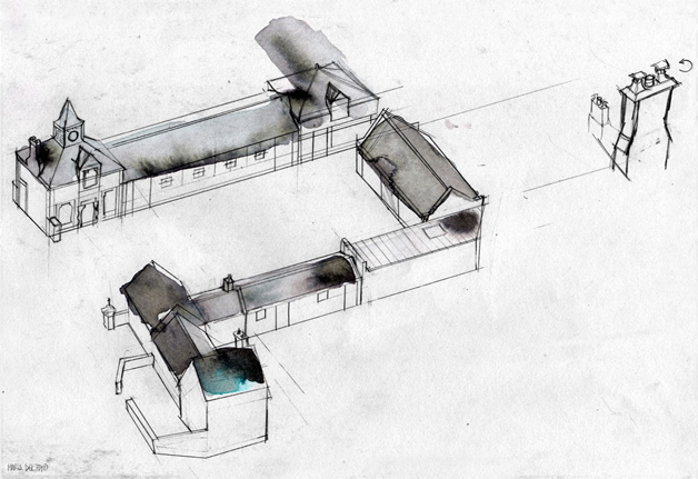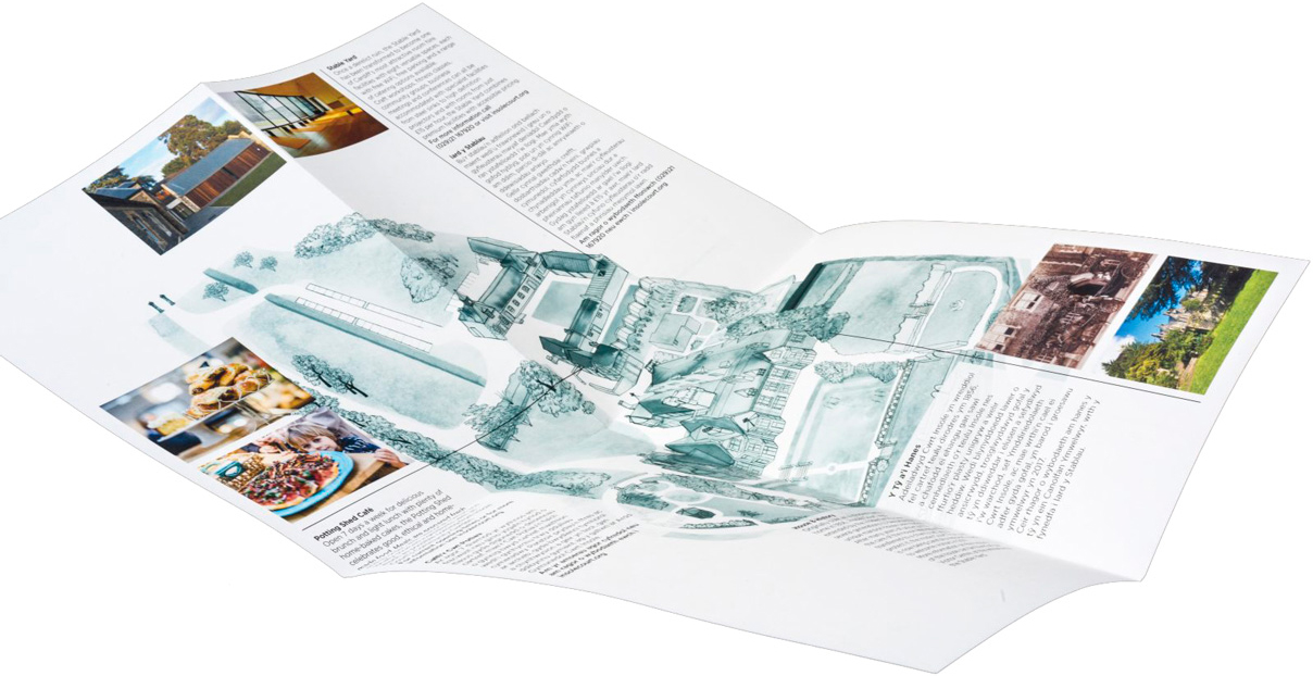 Map and illustrations of Insole Court and Insole Gardens.
